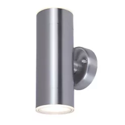 Bi-directional wall light with die-cast aluminium construction ensuring durability. Textured paint finish and sleek design provides modern architectural aesthetic. Suitable for external applications.