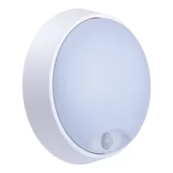 Luceco Eco Indoor & Outdoor Round LED Bulkhead With PIR Sensor Black / White 10W 700lm